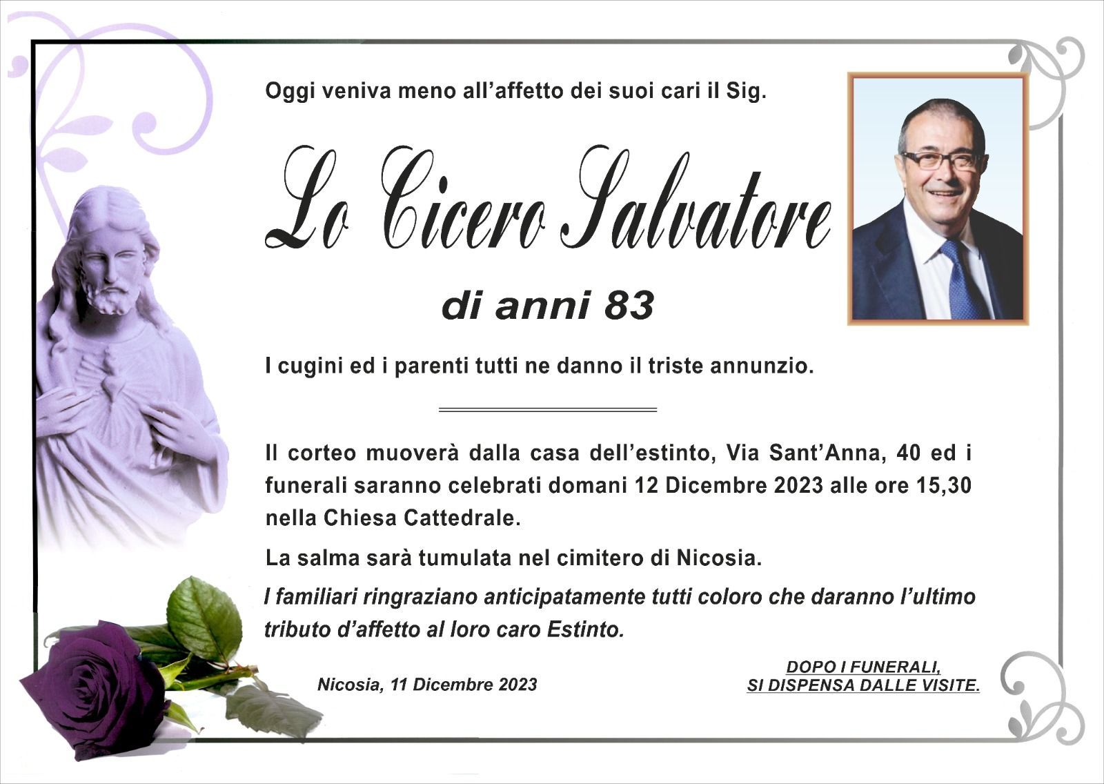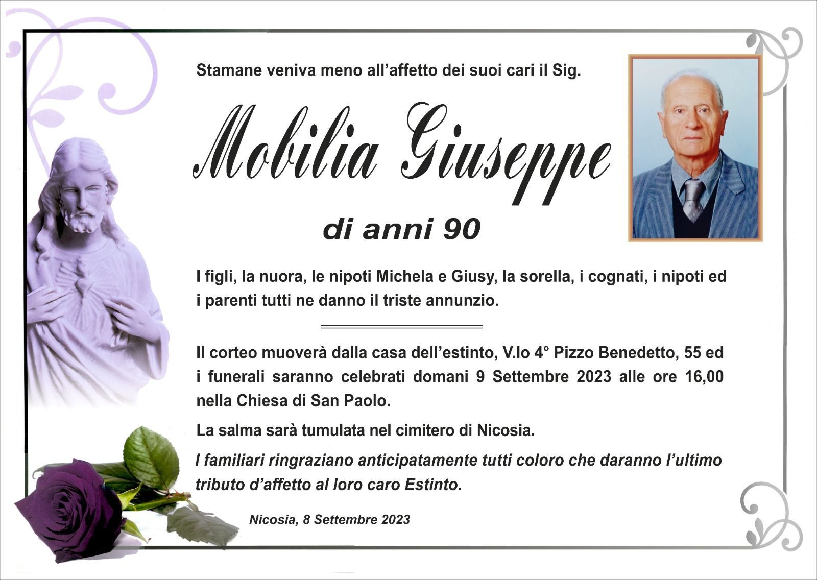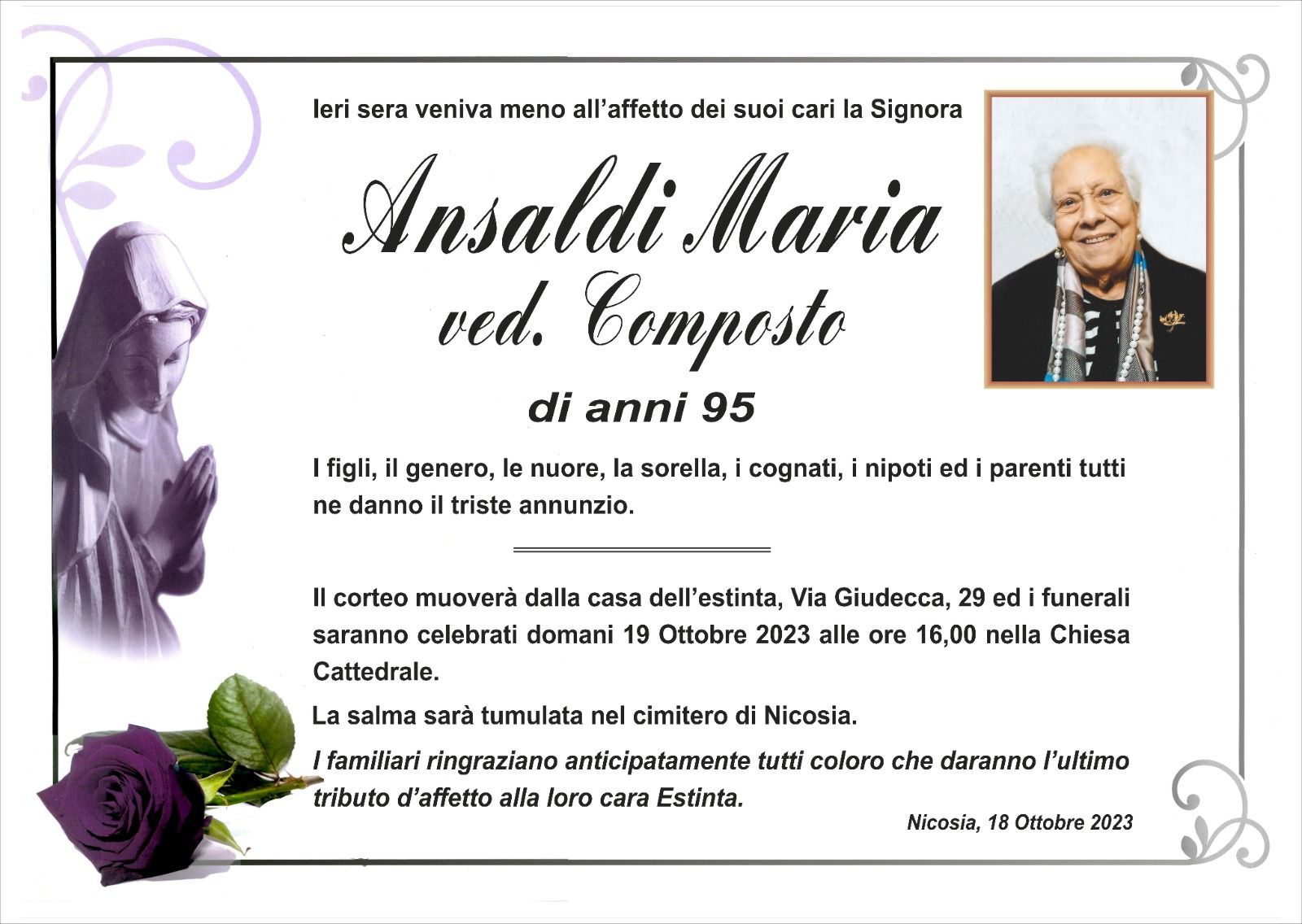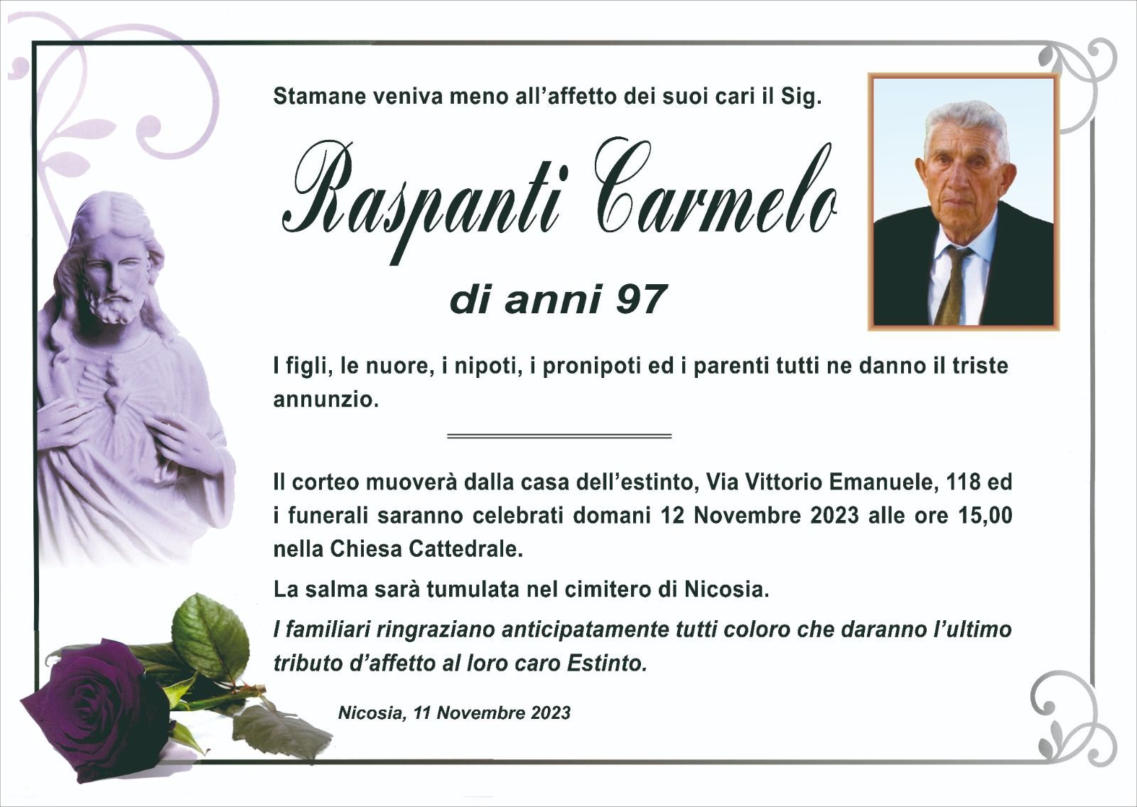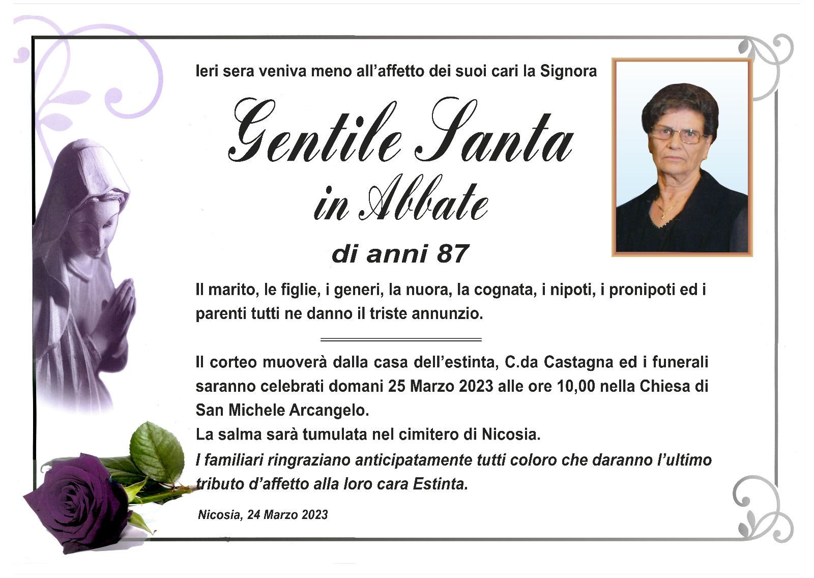 Dal 1980 l'agenzia di ONORANZE FUNEBRI MARASSA' & RUGOLO a Nicosia in provincia di Enna, effettua il disbrigo delle pratiche; trasporto delle salme in Italia e all'estero; realizzazione di articoli funerari; personalizzazione di marmi e graniti per lapidi. Ed ancora: addobbi funebri; allestimento camere ardenti; cremazione; disbrigo pratiche funerarie; pratiche cimiteriali; servizi funebri; servizi funebri completi; sigillatura casse e molto altro ancora.