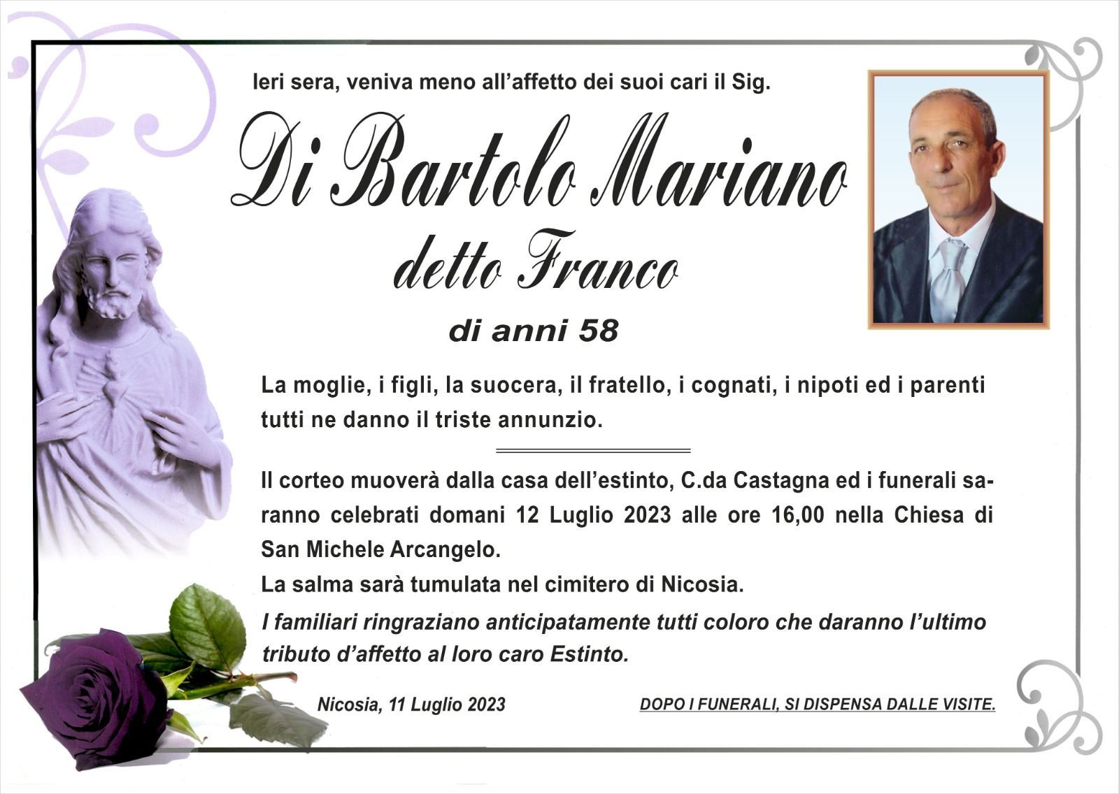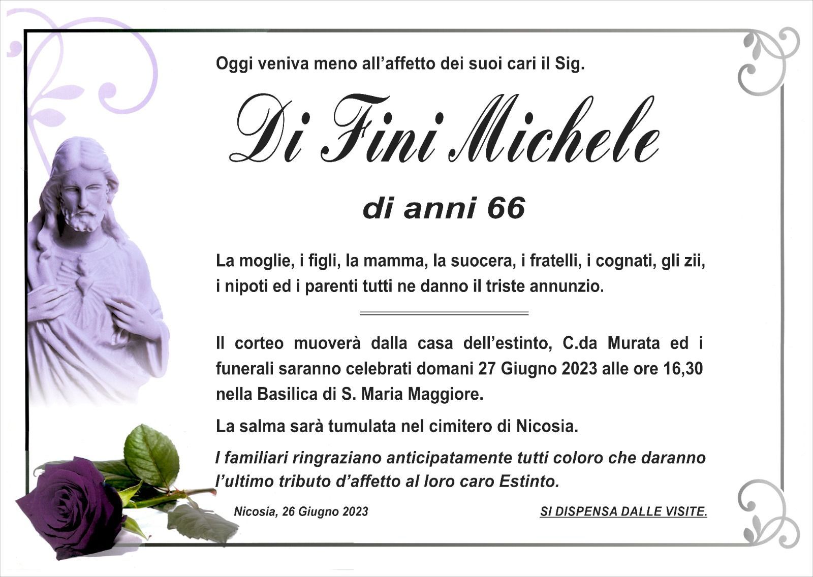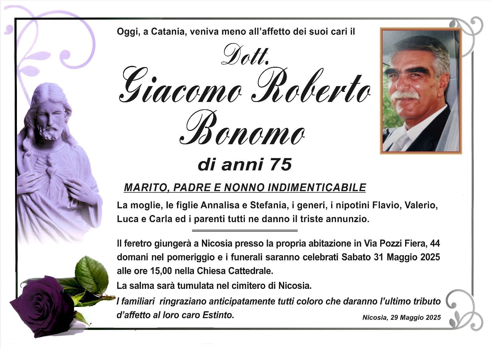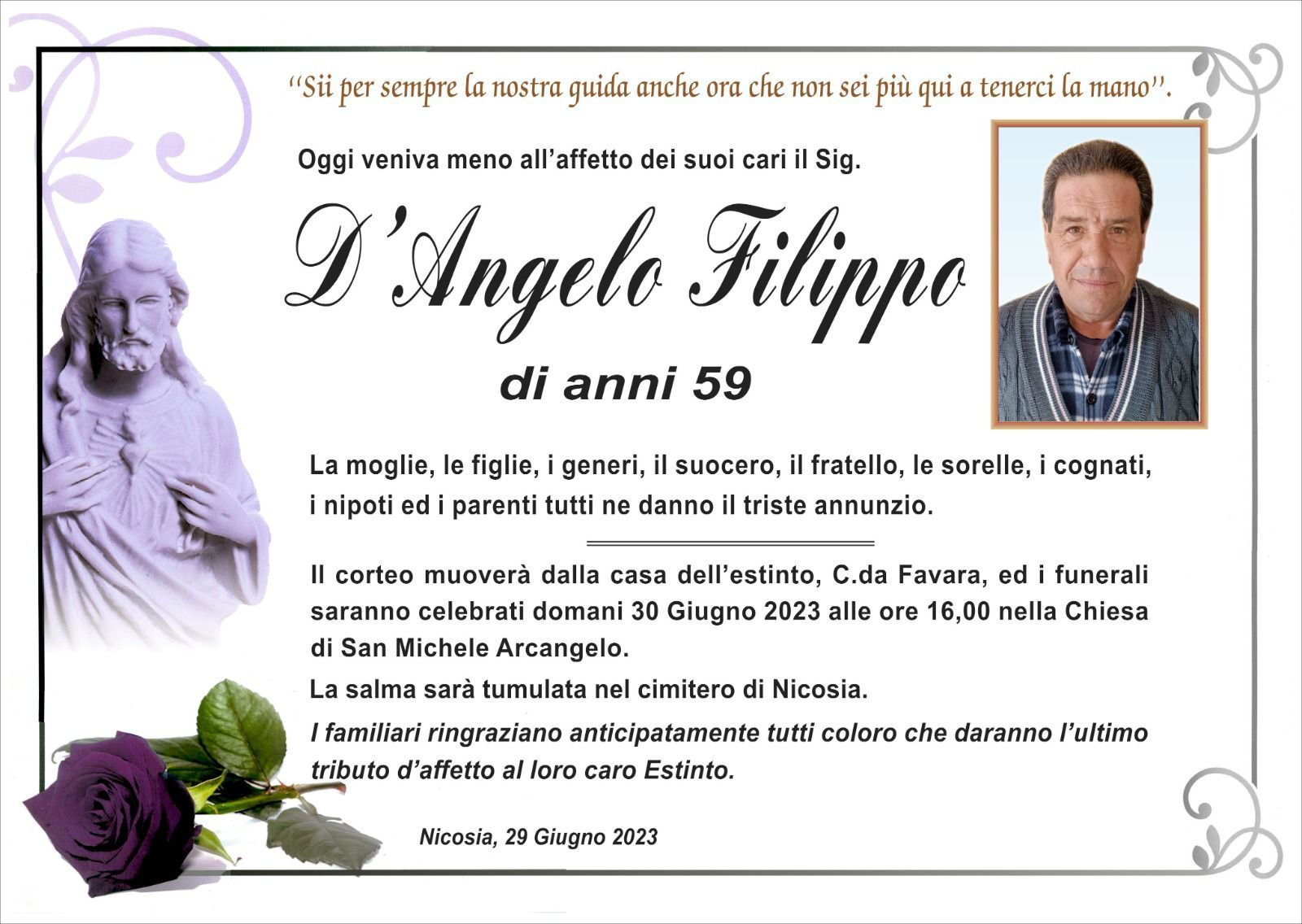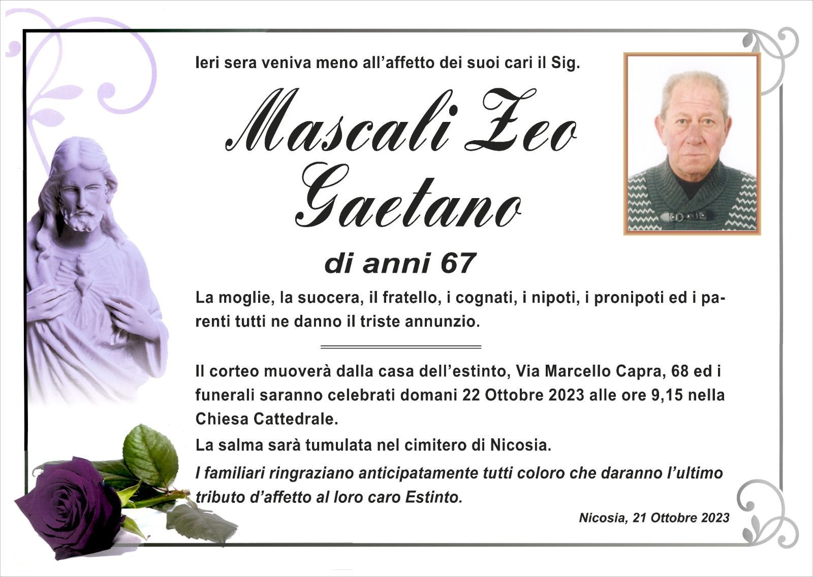 Dal 1980 l'agenzia di ONORANZE FUNEBRI MARASSA' & RUGOLO a Nicosia in provincia di Enna, effettua il disbrigo delle pratiche; trasporto delle salme in Italia e all'estero; realizzazione di articoli funerari; personalizzazione di marmi e graniti per lapidi. Ed ancora: addobbi funebri; allestimento camere ardenti; cremazione; disbrigo pratiche funerarie; pratiche cimiteriali; servizi funebri; servizi funebri completi; sigillatura casse e molto altro ancora.